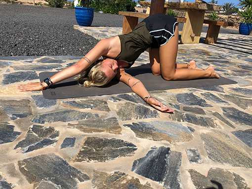 Sehr wichtig, wie bei jeder Sportart, ist das Cool-Down danach, mit dem man Verspannungen lösen und auch Muskelkater vorbeugen kann. Deshalb ist dies natürlich auch nach einer Surfsession oder nach eurem Surfkurs auf Fuerteventura angebracht. Vor allem die Nacken-, Schulter- und Rumpfmuskulatur wird durch das Paddeln stark beansprucht und die Wirbelsäule wird ständig überstreckt, was der Körper nicht gewohnt ist.