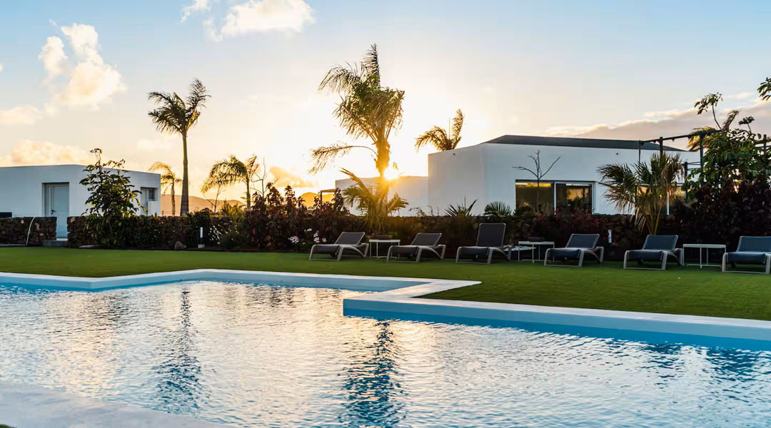 Stell dir vor: Du wachst in einer luxuriösen Villa auf, die Sonne strahlt durch die Fenster, draußen rauscht der Wind sanft durch die Palmen. Nach einem stärkenden Frühstück schnappst du dir dein Surfboard – die besten Wellen Fuerteventuras warten nur wenige Minuten entfernt auf dich!
